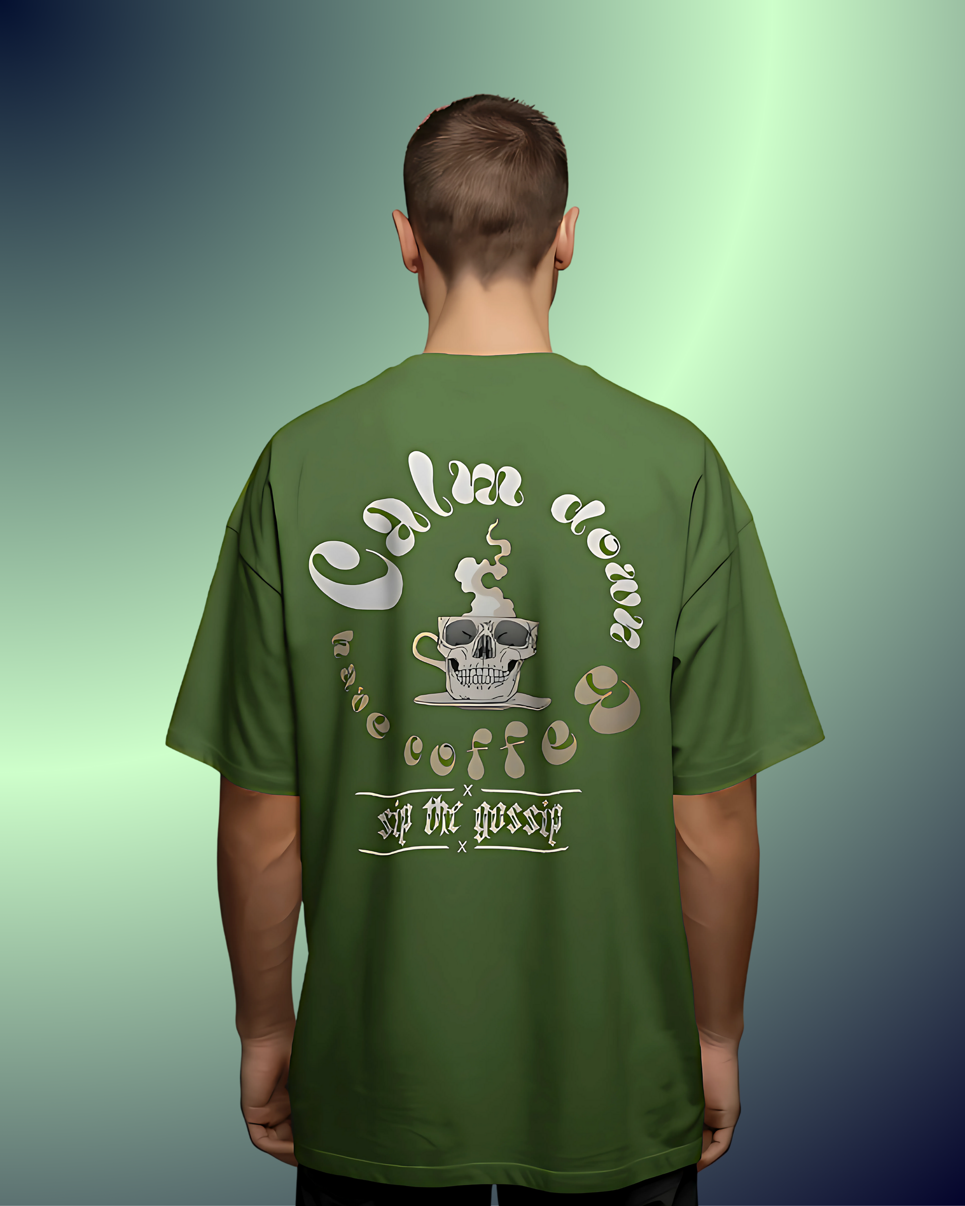 Fuel your style and your vibe with the ANIOTH Calm Down Coffee Skull Graphic Oversized T-Shirt.